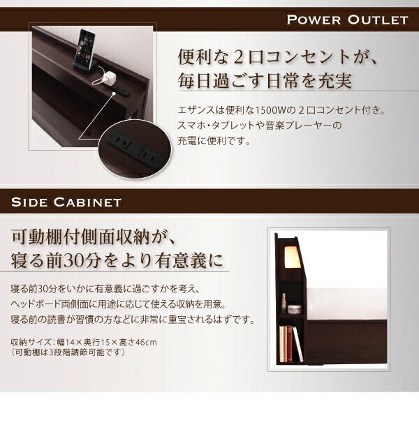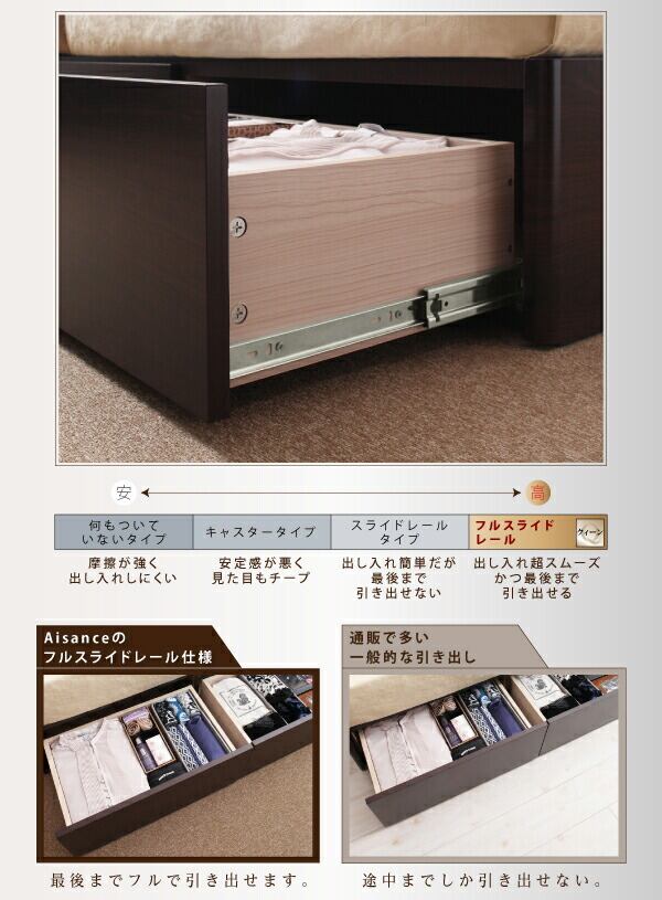 モダンデザイン・大型サイズ収納ベッド スタンダードポケットコイルマットレス付き クイーン(Q×1)