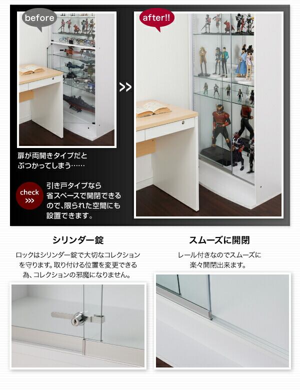 コレクションラック ワイド 本体 引き戸タイプ 背面ミラー2枚セット 奥行29