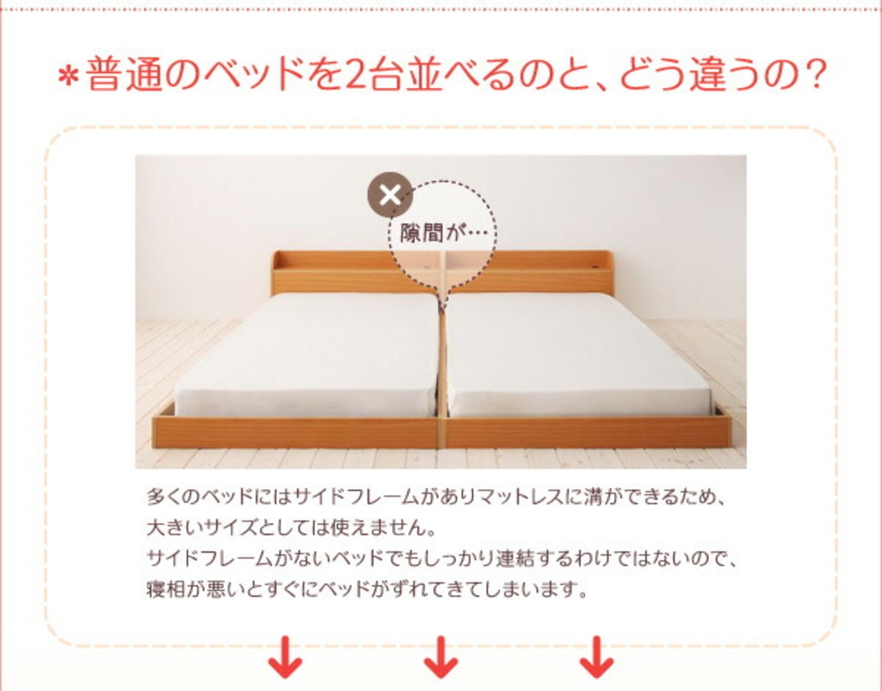 親子で寝られる棚・照明付き連結ベッド ポケットコイルマットレス付き ワイドK230