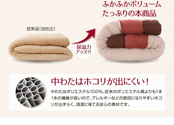 スウェード調パッチワークこたつ布団 掛布団&敷布団2点セット 5尺長方形(90×150cm)天板対応