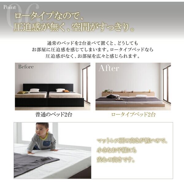 スーパーワイドキングサイズ 大型モダンフロアベッド スタンダードポケットコイルマットレス付き ワイドK280