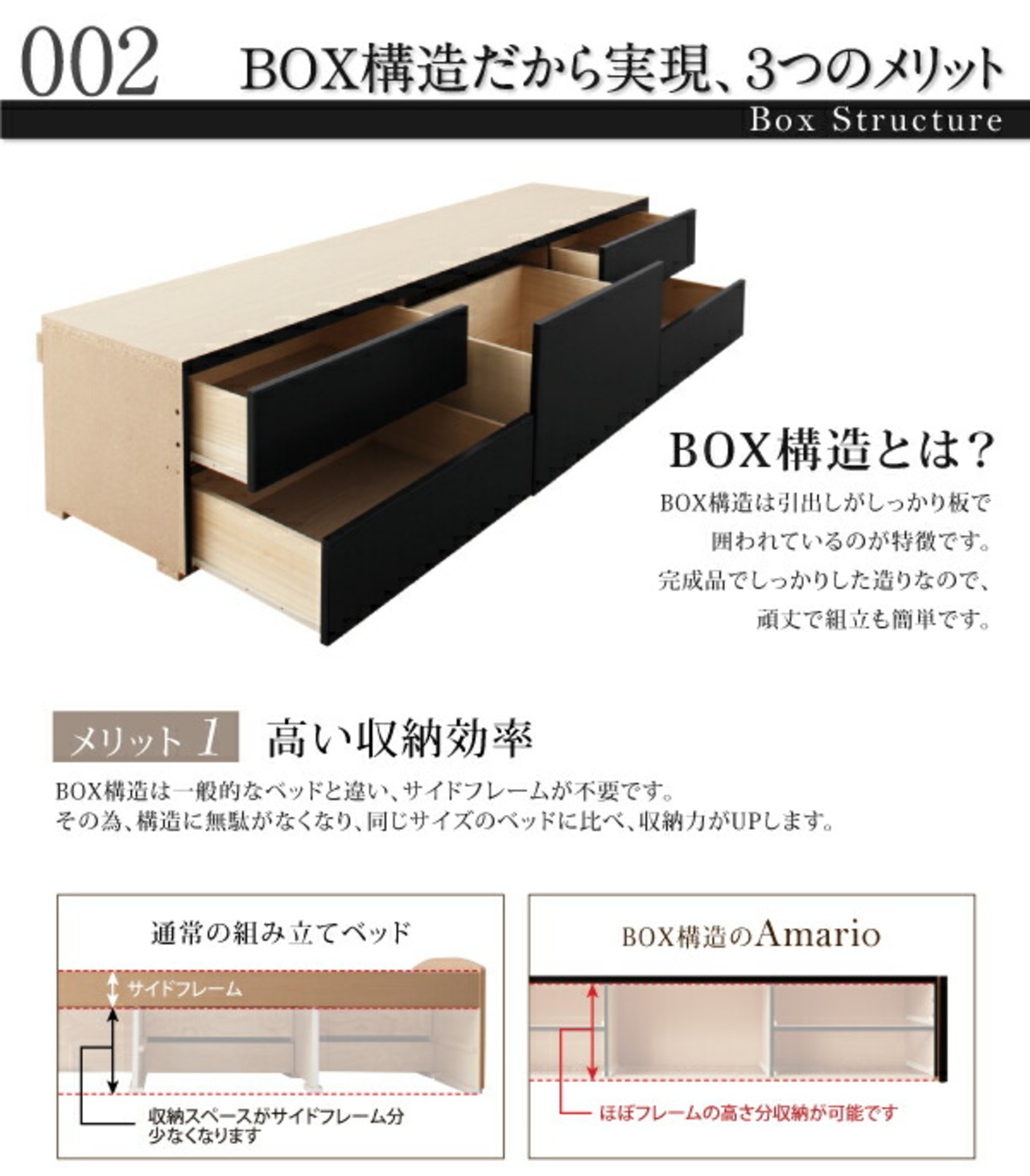 お客様組立 棚・コンセント付き_大容量チェストベッド 薄型抗菌国産ポケットコイルマットレス付き シングル