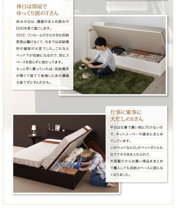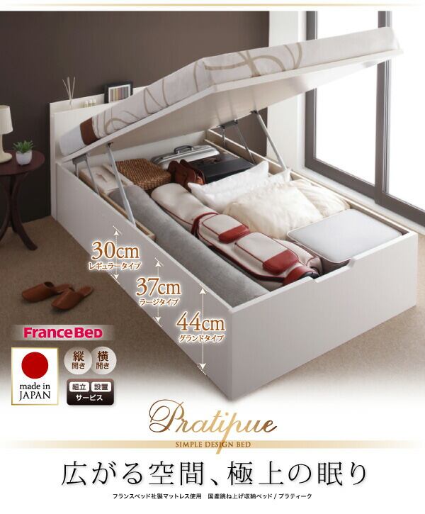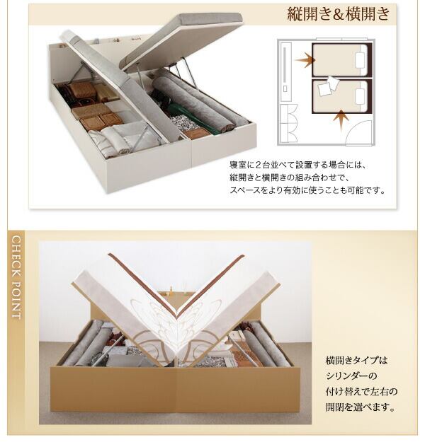 お客様組立 国産跳ね上げ収納ベッド マルチラススーパースプリングマットレス付き 横開き シングル 深さグランド