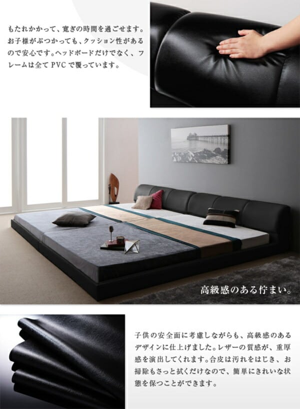 モダンデザインレザーフロアベッド スタンダードボンネルコイルマットレス付き ワイドK260(SD+D)