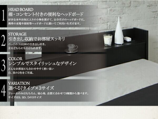 棚・コンセント付き収納すのこベッド スタンダードポケットコイルマットレス付き ダブル
