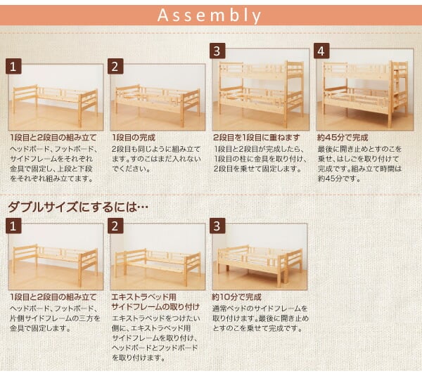 ダブルサイズになる・添い寝ができる二段ベッド ベッドフレームのみ シングル