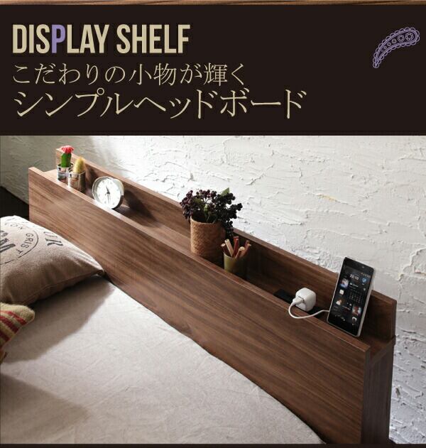 棚・コンセント付きモダンデザインローベッド スタンダードボンネルコイルマットレス付き フルレイアウト クイーン(Q×1) フレーム幅160