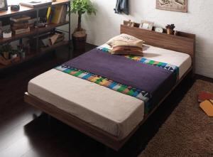 棚・コンセント付きモダンデザインローベッド プレミアムポケットコイルマットレス付き フルレイアウト クイーン(Q×1) フレーム幅160