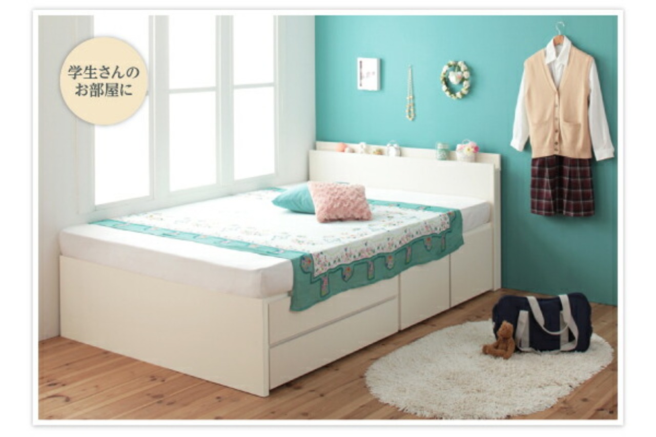 お客様組立 日本製_棚・コンセント付き_大容量チェストベッド マルチラススーパースプリングマットレス付き シングル