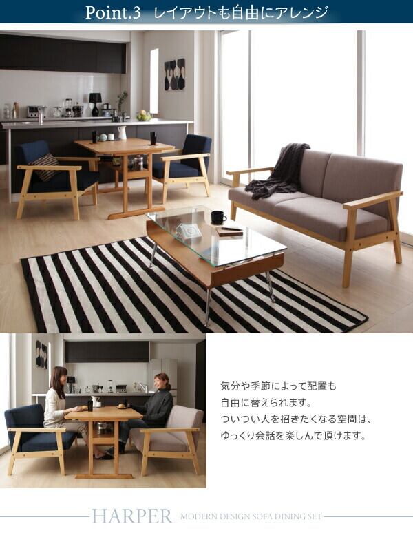 モダンデザイン ソファダイニングセット 5点セット(テーブル+1Pソファ4脚) W120