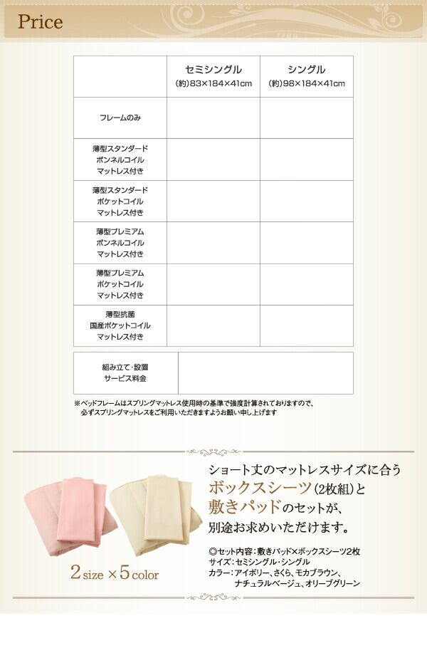お客様組立 ベッドフレームのみ セミシングル ショート丈