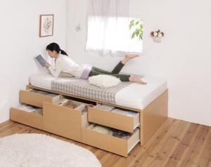 お客様組立 日本製_ヘッドレス大容量コンパクトチェストベッド 薄型抗菌国産ポケットコイルマットレス付き セミシングル ショート丈