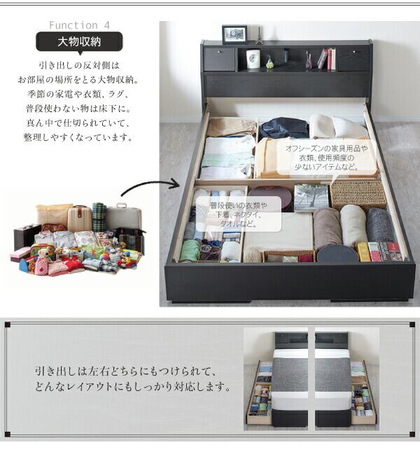 フラップ棚・照明・コンセントつき多機能ベッド ポケットコイルマットレス付き シングル