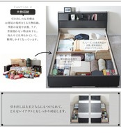 フラップ棚・照明・コンセントつき多機能ベッド ポケットコイルマットレス付き ダブル