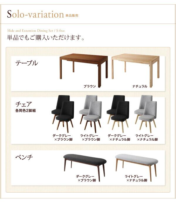 スライド伸縮テーブルダイニング 8点セット(テーブル+チェア6脚+ベンチ1脚) W135-235