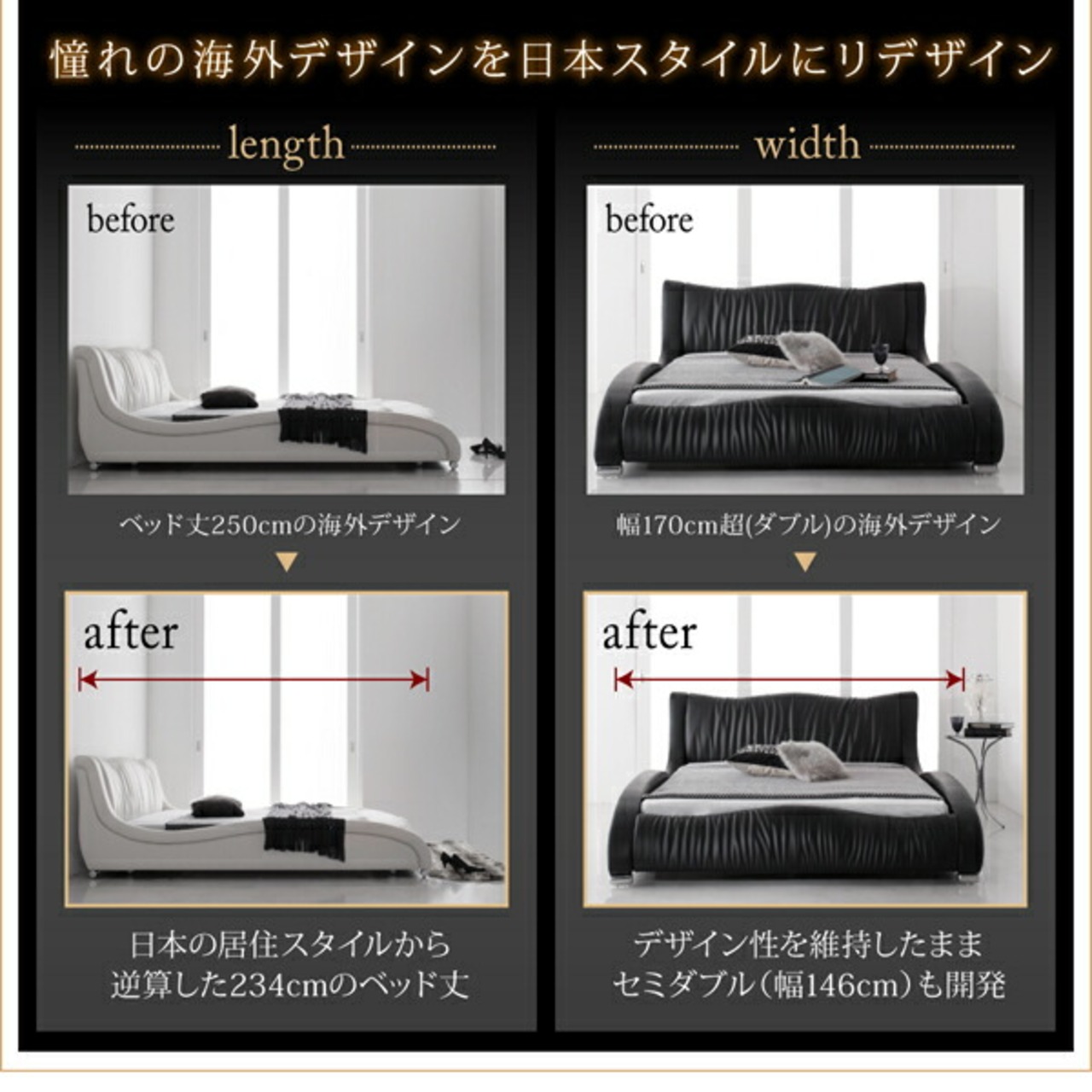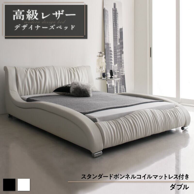 モダンデザイン・高級レザー・デザイナーズベッド スタンダードボンネルコイルマットレス付き ダブル