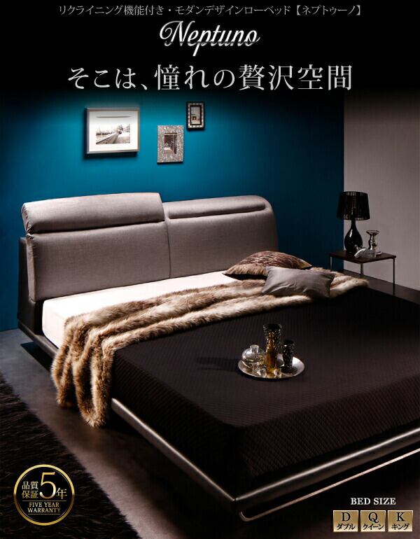 リクライニング機能付き・モダンデザインローベッド スタンダードボンネルコイルマットレス付き ダブル