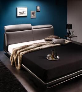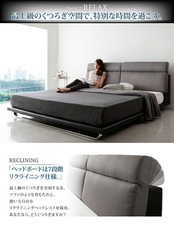 リクライニング機能付き・モダンデザインローベッド スタンダードポケットコイルマットレス付き ダブル