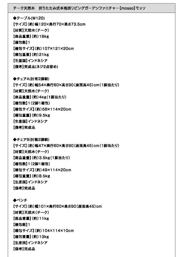 チーク天然木 折りたたみ式本格派リビングガーデンファニチャー テーブル W120