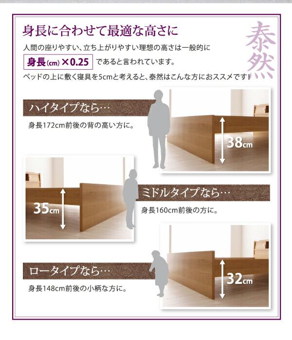 高さが変えられる棚・照明・コンセント付き畳ベッド 泰然 たいぜん 引出4杯付 ダブル
