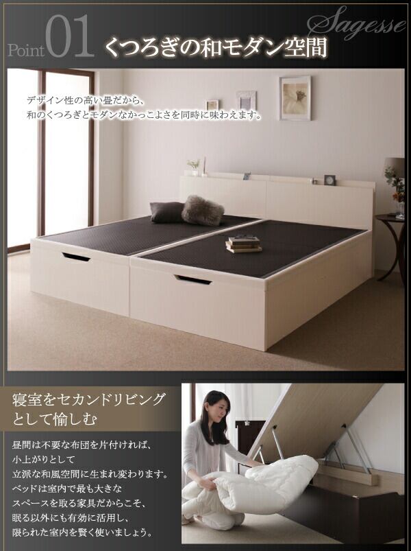お客様組立 美草・日本製_大容量畳跳ね上げベッド シングル 深さラージ