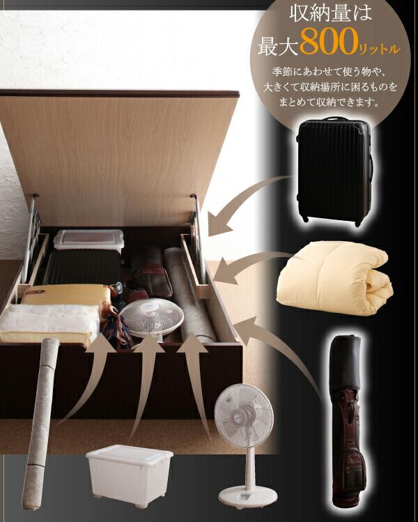 お客様組立 美草・日本製_大容量畳跳ね上げベッド セミダブル 深さグランド