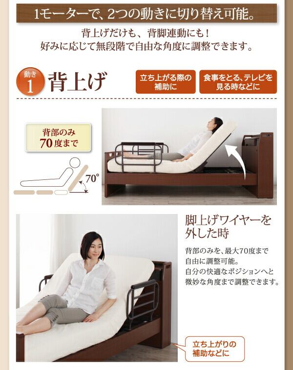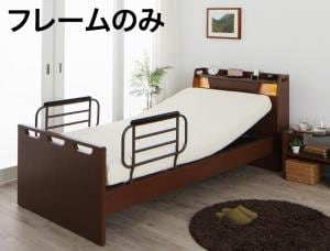 お客様組立 棚・照明・コンセント付き電動ベッド ベッドフレームのみ 1モーター シングル