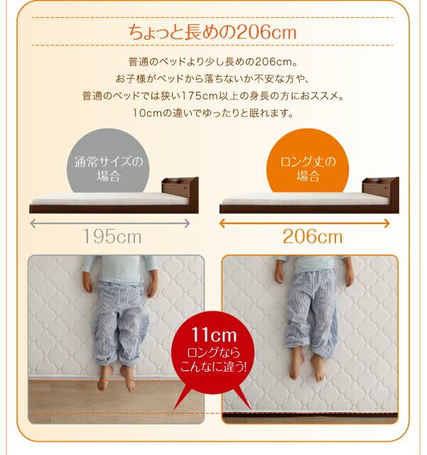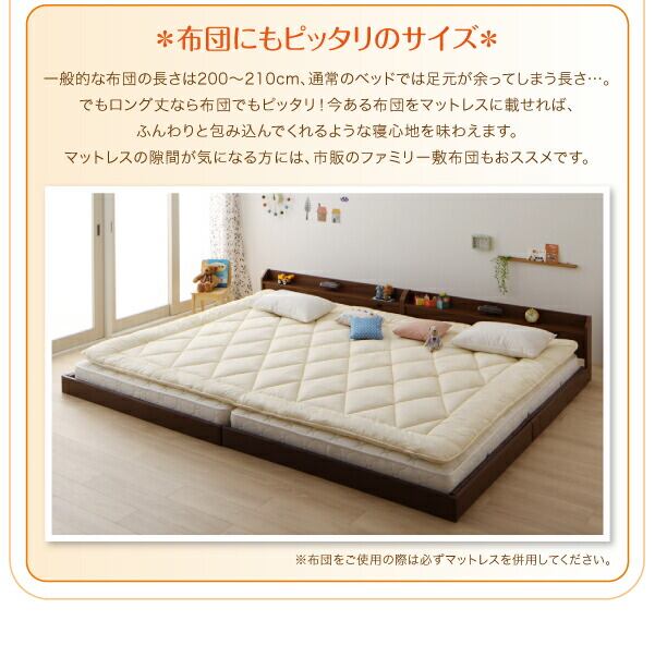 棚・照明・コンセント付ロング丈連結ベッド 国産ボンネルコイルマットレスハード付き キング ロング丈