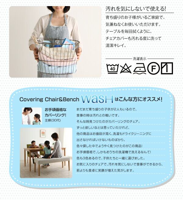 おうちの洗濯機でラクラク洗える! カバーリングダイニング 5点セット(テーブル+チェア4脚) W150