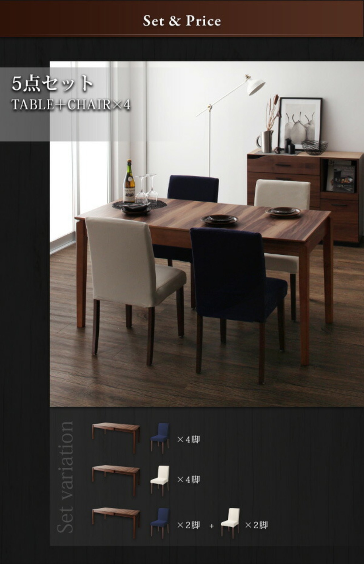 ダイニング7点セット(テーブル+チェア6脚) 幅120-180