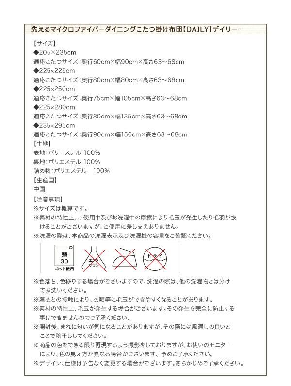 こたつ掛け布団単品 長方形(60×90cm)天板対応