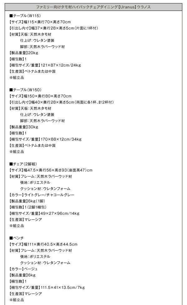 ファミリー向け タモ材 ハイバックチェア ダイニング ダイニングテーブル W115