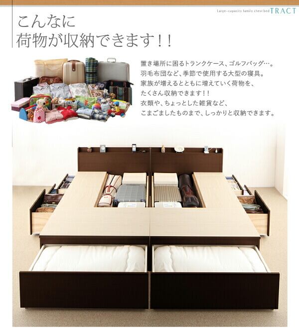 お客様組立 大容量収納ファミリーチェストベッド ベッドフレームのみ A+C ワイドK240(SD×2)