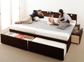 お客様組立 大容量収納ファミリーチェストベッド 薄型スタンダードボンネルコイルマットレス付き A+A ワイドK200