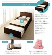 お客様組立 大容量収納ファミリーチェストベッド 薄型スタンダードポケットコイルマットレス付き B+B ワイドK200