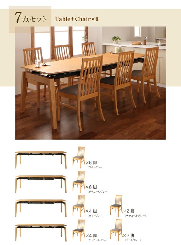 ダイニング5点セット(テーブル+チェア4脚) W140-240