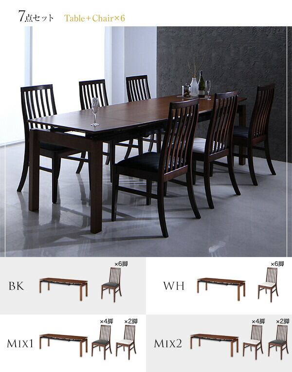 ダイニング7点セット(テーブル+チェア6脚) W140-240