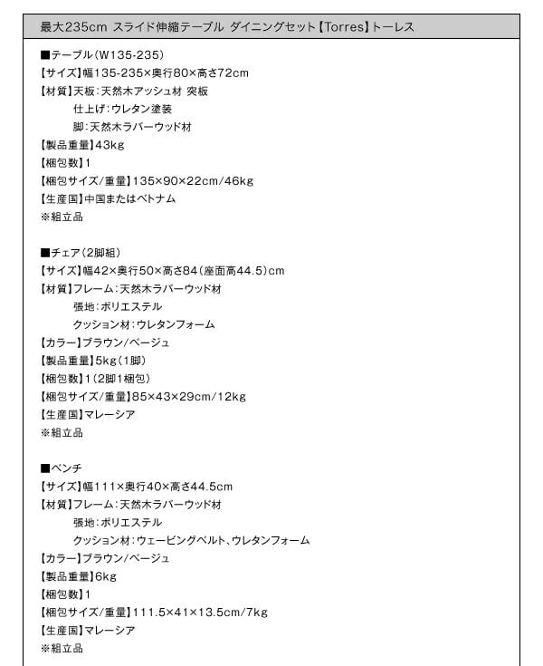 最大235cm スライド伸縮テーブル ダイニングセット ダイニングテーブル W135-235