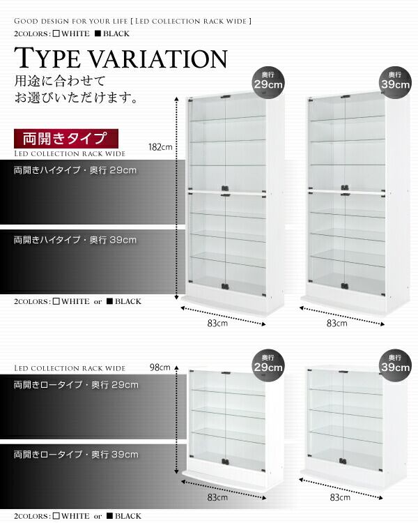 LED付きコレクションラック ワイド 本体 引き戸タイプ 奥行39