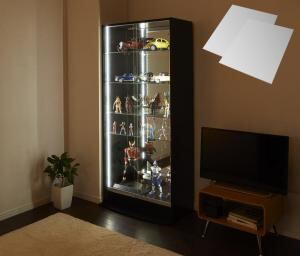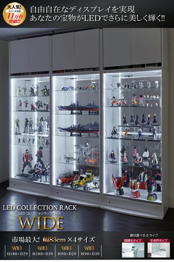 LED付きコレクションラック ワイド 本体 引き戸タイプ 背面ミラー2枚セット 奥行29