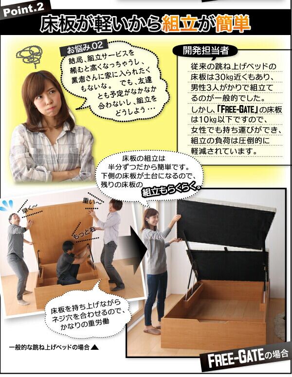 お客様組立 搬入楽々棚コンセント跳ね上げベッド 薄型プレミアムボンネルコイルマットレス付き 縦開き シングル 深さラージ