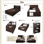 スライド収納付き_大容量チェストベッド 薄型プレミアムボンネルコイルマットレス付き シングル レギュラー丈