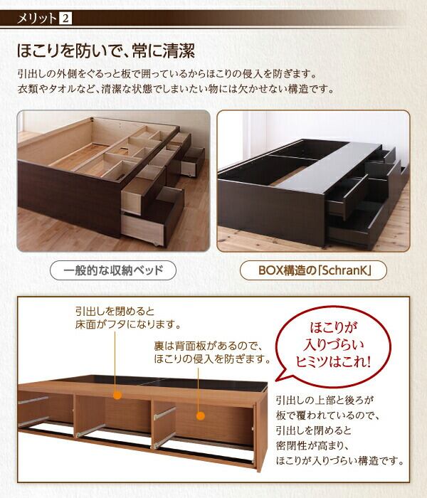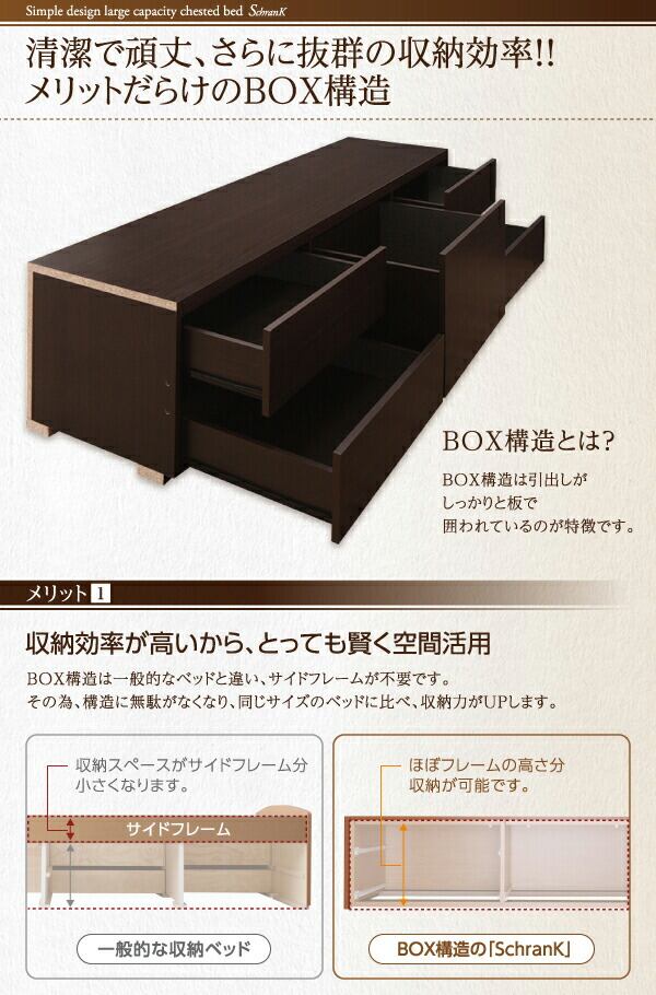 シンプルデザイン_大容量チェストベッド 薄型スタンダードボンネルコイルマットレス付き セミダブル