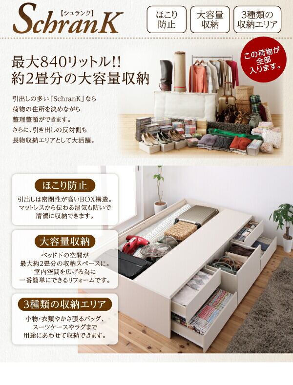シンプルデザイン_大容量チェストベッド マルチラススーパースプリングマットレス付き ダブル