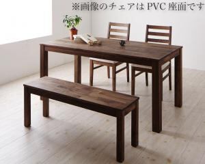 総無垢材ワイドダイニング 4点セット(テーブル+チェア2脚+ベンチ1脚) ウォールナット 板座 W160