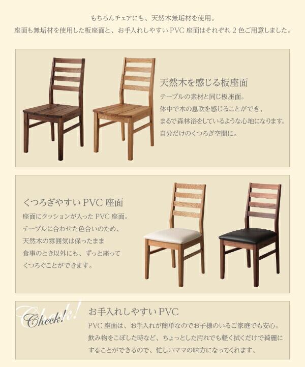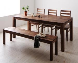 総無垢材ワイドダイニング 5点セット(テーブル+チェア3脚+ベンチ1脚) ウォールナット 板座 W180