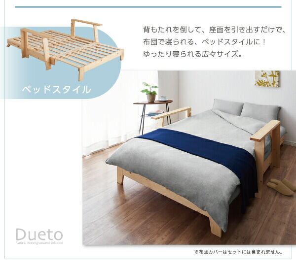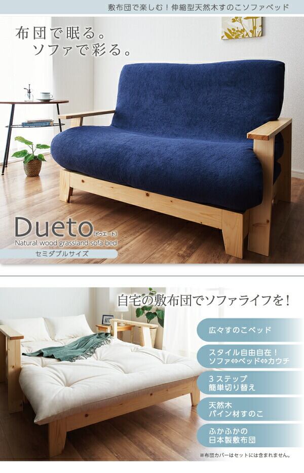 敷布団で楽しむ伸縮型天然木すのこソファベッド 布団セット 幅140cm