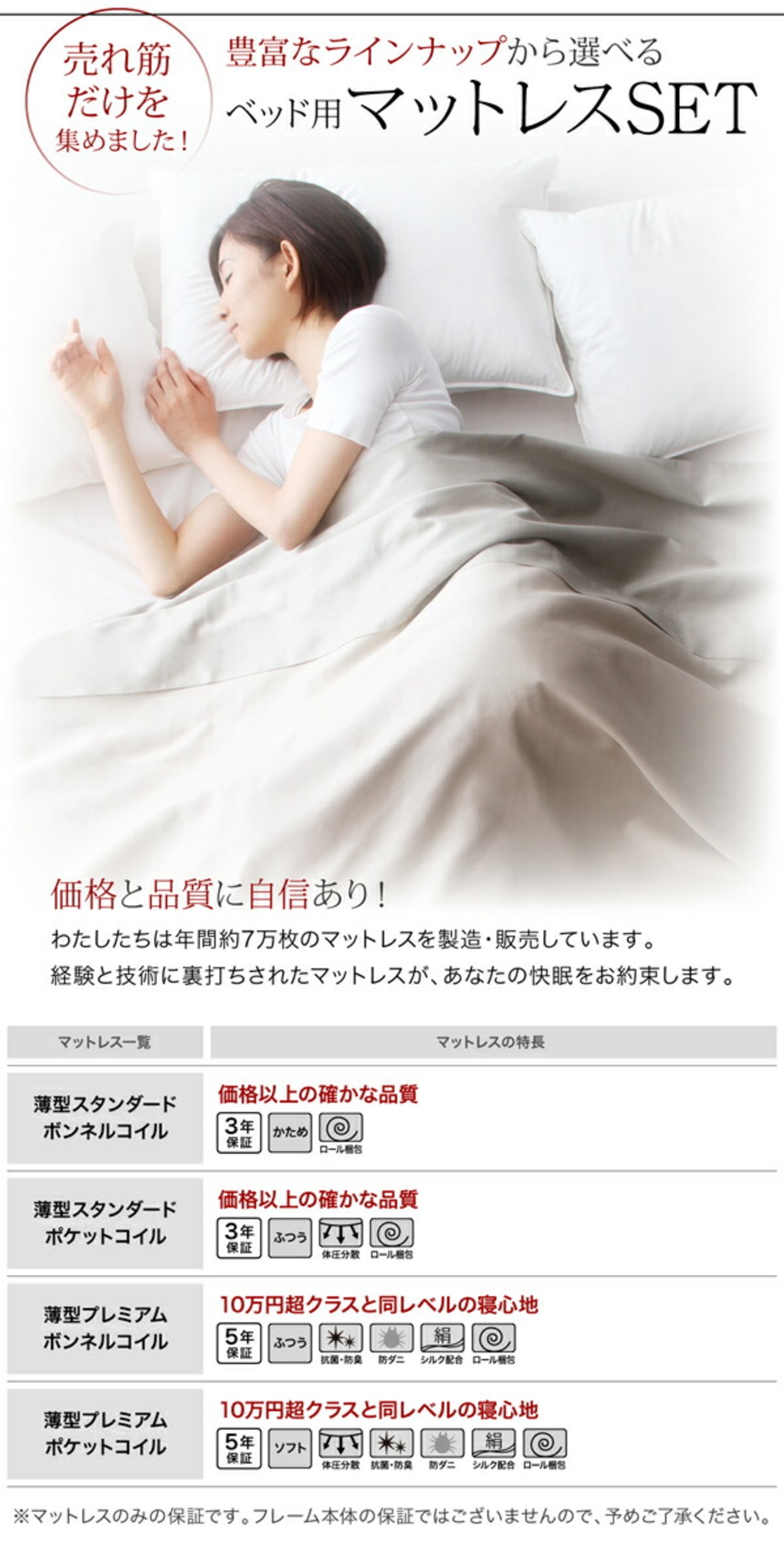 薄型スタンダードボンネルコイルマットレス付き 引出し4杯 セミダブル