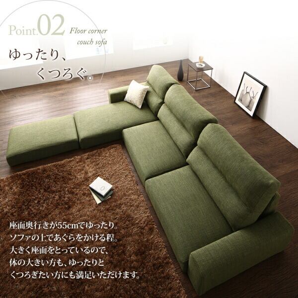 フロアコーナーカウチソファ ソファ ロータイプ 4P