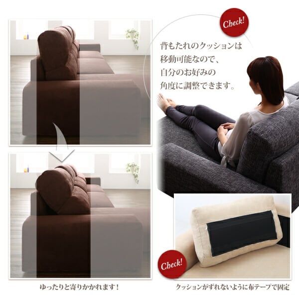 フロアコーナーカウチソファ ソファ&オットマンセット ロータイプ 3P